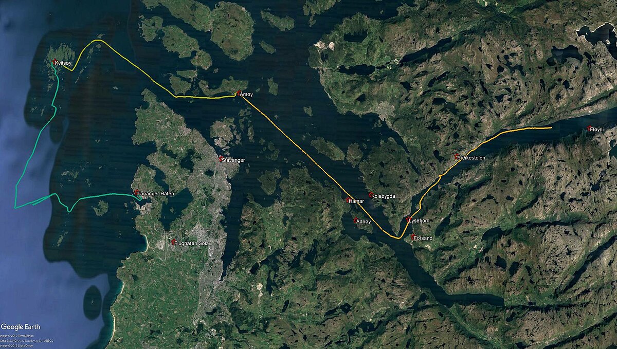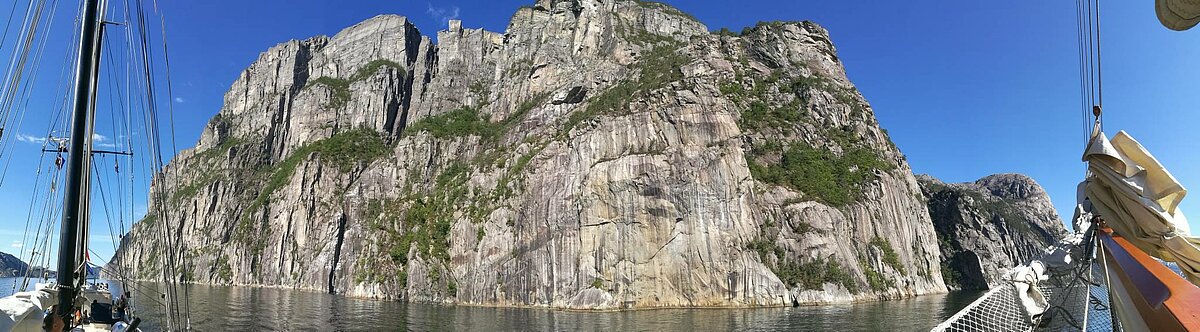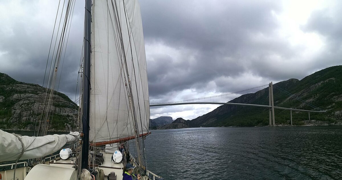 Anfang August 2018 gings vom norwegischen Tananger zunächst auf die Kvitsøy Inseln . In der zweite Etappe segelten wir nach Amøy. Von dort ins Fjordland der norwegischen Küste und schliesslich unter der Brücke durch in den Lysefjord. Unter dem Preikestolen, der höchsten Klippe der Welt gings nach Flørli, unser Ziel im Lysefjord.