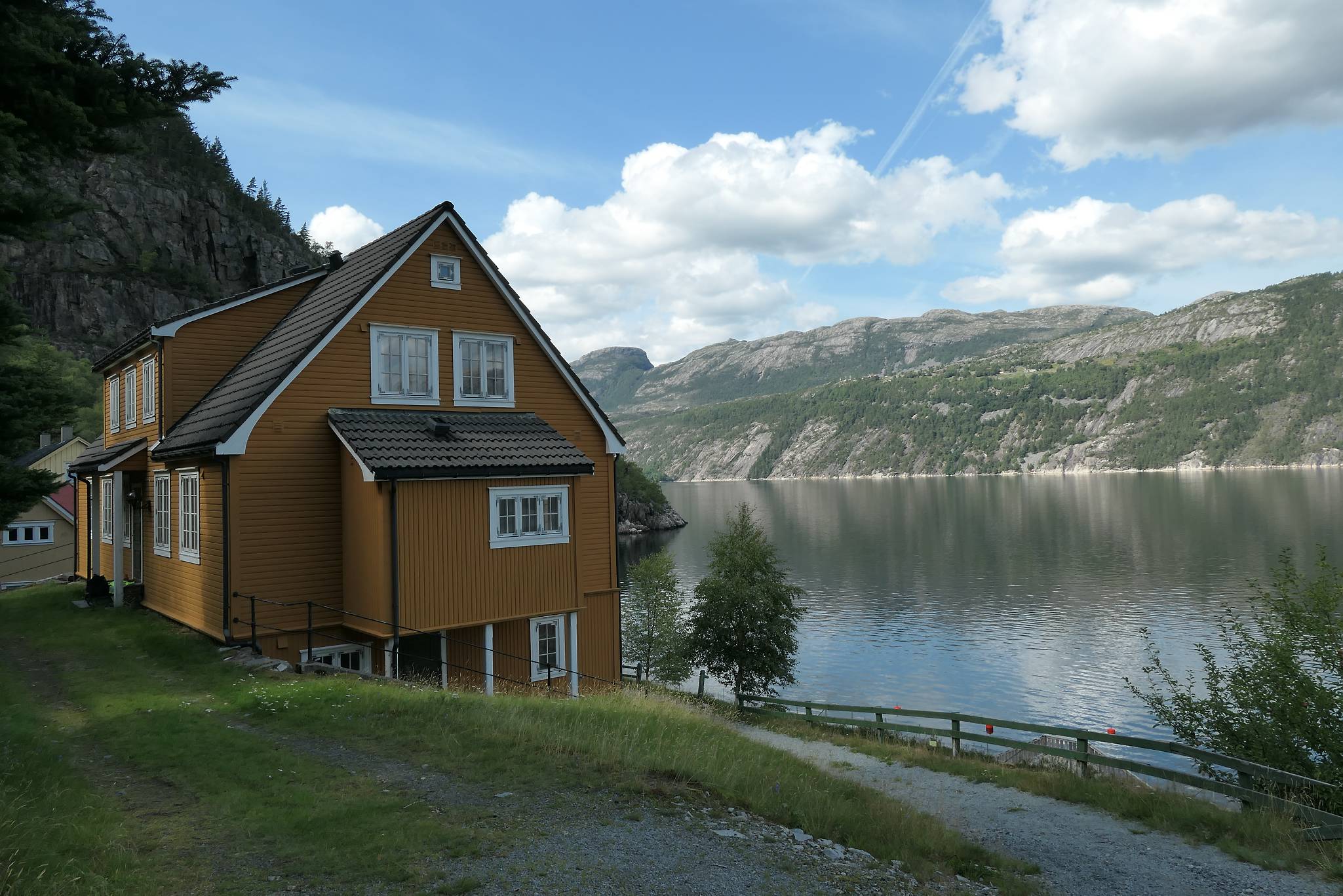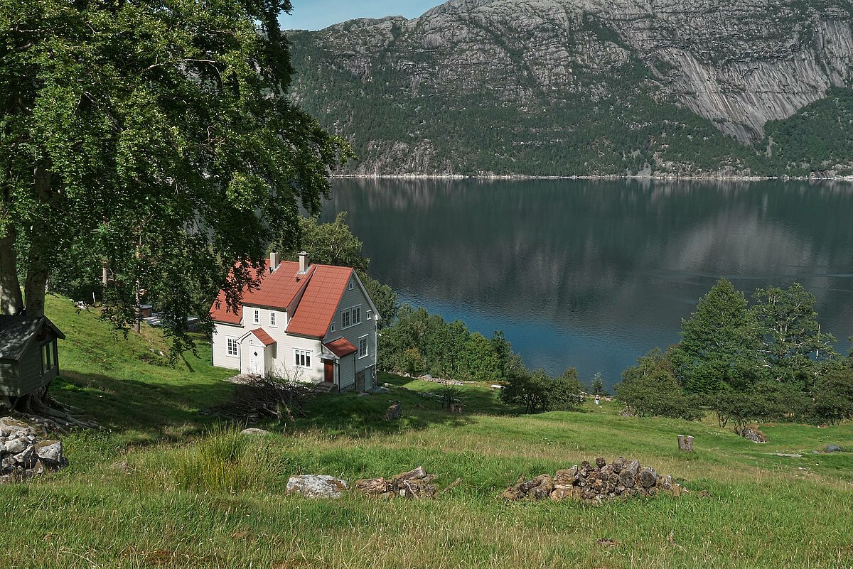 Die Flørlitreppe hat 4444 Stufen und ist einer der längsten Holztreppen der Welt. Die Treppe folgt den Schleusen, die das Wasserwerk am Ufer versorgten. Sie endet am Terneyass Damm. Weit über den Baumspitzen haben Sie eine fantastische Aussicht auf den Lysefjord und in Richtung Preikestolen.