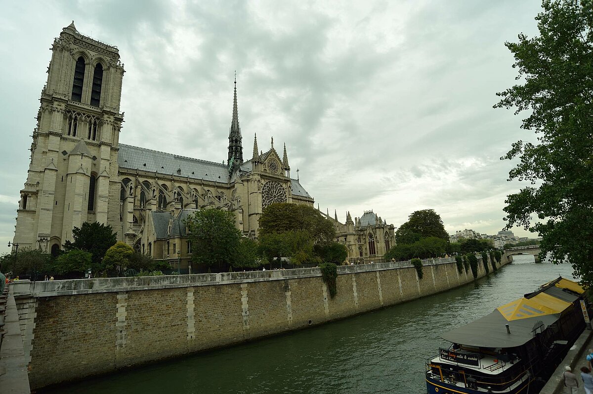 Die römisch-katholische Kirche Notre-Dame de Paris ist die Kathedrale des Erzbistums Paris. Die unter dem Patrozinium Unserer Lieben Frau, also der Gottesmutter Maria, stehende Kirche wurde in den Jahren von 1163 bis 1345 errichtet und ist damit eines der frühesten gotischen Kirchengebäude Frankreichs.